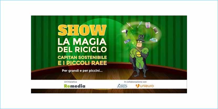 “La magia del riciclo”, uno show itinerante in tutta Italia – in collaborazione con Aires e Unieuro – per sensibilizzare sull’importanza della raccolta e del riciclo di piccole apparecchiature elettriche ed elettroniche. Il progetto della durata di 60 giorni toccherà 20 città in tutta la nazione, ospitato dai punti vendita del partner Unieuro.