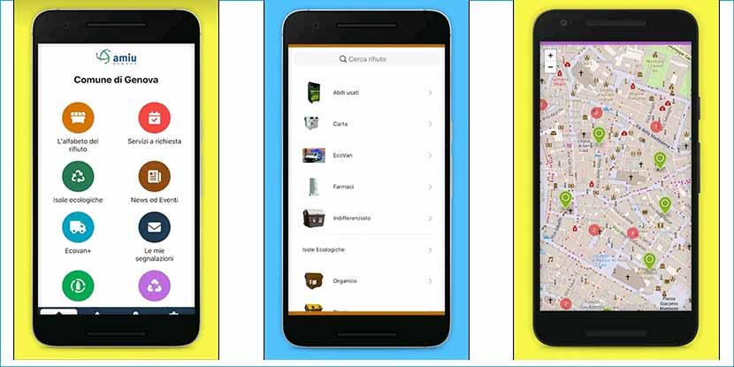 L’applicazione gratuita – disponibile per Apple e Android – sarà una guida interattiva per i cittadini nel mondo dei servizi di igiene urbana offerti da AMIU; con una grafica essenziale e colorata è strutturata per argomento e fornisce mappe geolocalizzate per i diversi servizi offerti: Isole ecologiche, Centri di raccolta, Ecopunti, Ecovan e Ecocompattatori a Genova e nel Genovesato.
