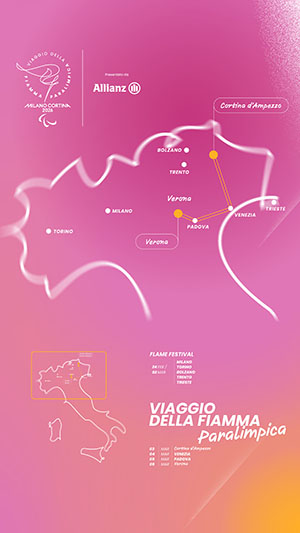 La Fiamma Paralimpica verrà accesa il 24 febbraio 2026 nello storico luogo di nascita dello sport Paralimpico, Stoke Mandeville in Inghilterra, e percorrerà 2mila chilometri in 11 giorni, toccando numerose tappe e territori nei 5 Flame Festival di Milano, Torino, Trento, Bolzano e Trieste. Il 3 marzo ci sarà la Unifying Ceremony a Cortina. Il 4, 5 e 6 marzo sono i giorni della staffetta: il 4 si parte da Cortina e si arriva a Venezia, il 5 si arriva a Padova e il 6 si arriva a Verona.