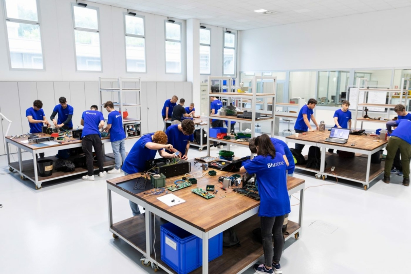 Infatti in questo stesso periodo negli uffici e nei parchi dell’impresa di Angeli di Rosora, vanno in “onda” – le onde fanno parte del linguaggio identitario della Loc- cioni dove i dipendenti vengono chiamati collaboratori e dove è stata creata anche una piccola casa editrice Desiderio Editore – altri progetti appartenenti all’universo Bluzone; oltre agli studenti delle superiori per l’alternanza scuola lavoro (alla Loccioni si preferisce chiamarla convergenza scuola-lavoro), c’è la Classe Virtuale: 30 ragazzi al quarto anno degli Istituti Tecnici che stanno progettando un tavolo interattivo dedicato proprio ai bambini.